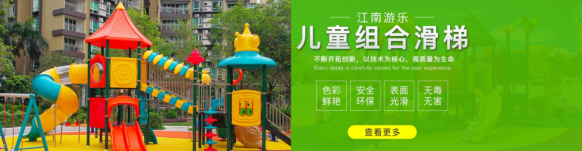 東莞市江南體育游樂設施有限公司 (江南游樂),公司成立于2006年,專注于無動力游樂設備(兒童游樂設施)的設計、定制生產、銷售、安裝、售后等一站式服務。我們的優勢:有十多年無動力兒童游樂設施產品的服務經驗;生產基地分布廣東、浙江,致力于公園小區無動力游樂設備的研發生產、非標定制;我們注重產品的細節,不斷創新,產品具有功能多樣、安全環保、使用周期長等優點;我們始終秉承“質量至上、信譽至上、服務至上”的經營理念;